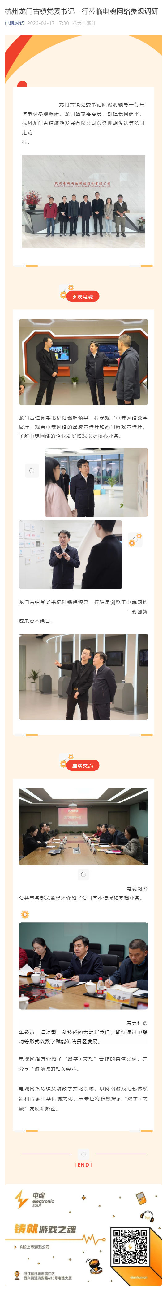 杭州龍門(mén)古鎮(zhèn)黨委書(shū)記一行蒞臨電魂網(wǎng)絡(luò)參觀調(diào)研