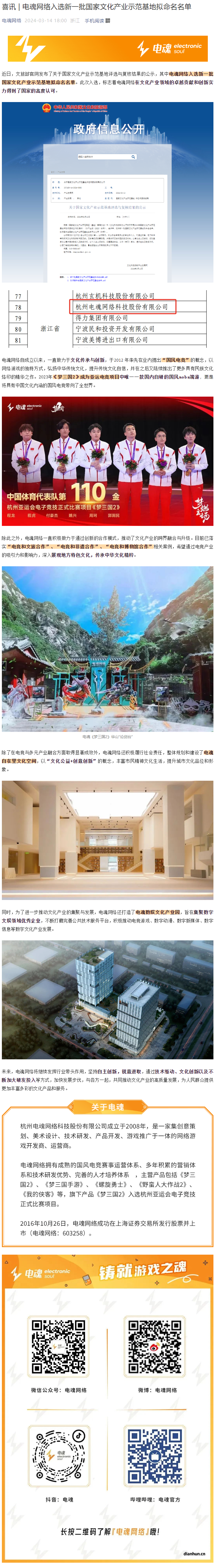 喜訊 | 電魂網絡入選新一批國家文化產業示范基地擬命名名單